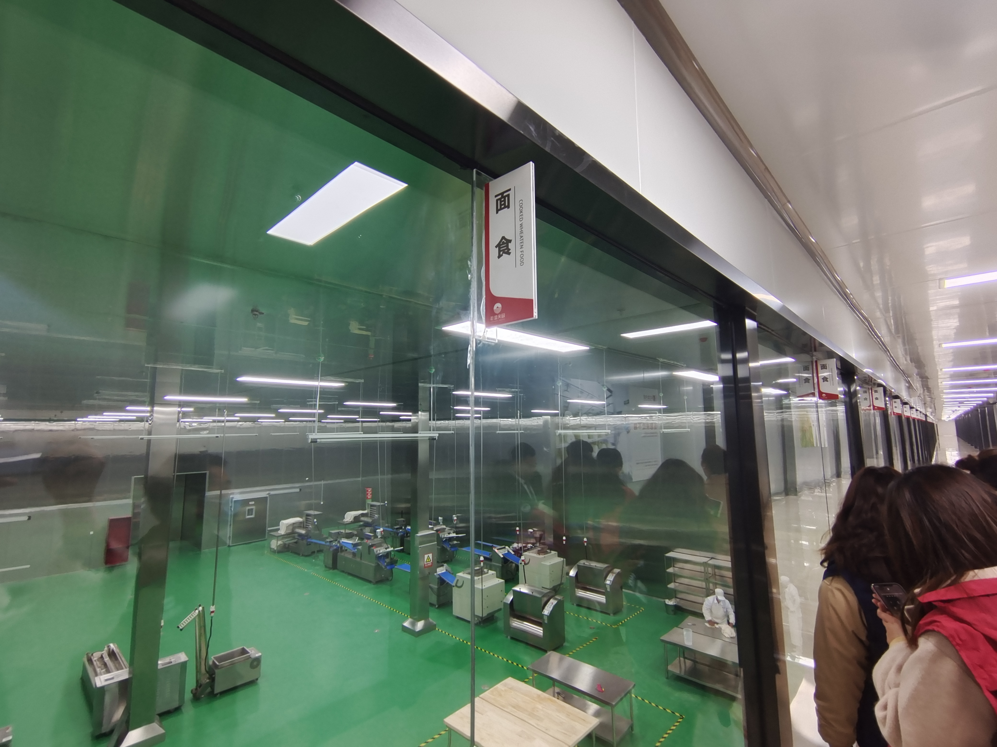 在位于川匯區(qū)女媧路88號(hào)的乾盛央廚,直播團(tuán)隊(duì)用圖文形式實(shí)時(shí)現(xiàn)場(chǎng)呈現(xiàn)午餐制作整體環(huán)境。隔著參觀走廊上的玻璃,全線開機(jī)一小時(shí)能出12000個(gè)無(wú)添加饅頭的面食車間,從生米到熟飯全自動(dòng)機(jī)械化制作的米飯車間,全程紫外線消毒、菜品全清真的烹飪車間,流水線上分盒分箱并與物流區(qū)無(wú)縫銜接的分餐生產(chǎn)線,這些在主播與乾盛央廚工作人員的一問一答中呈現(xiàn)在觀看直播的家長(zhǎng)朋友們面前?!拔覀儾粌H做飯,餐具也由我們提供,餐具是PPP材料,耐高溫,安全無(wú)毒,筷子、勺子是不銹鋼的。”工作人員介紹。