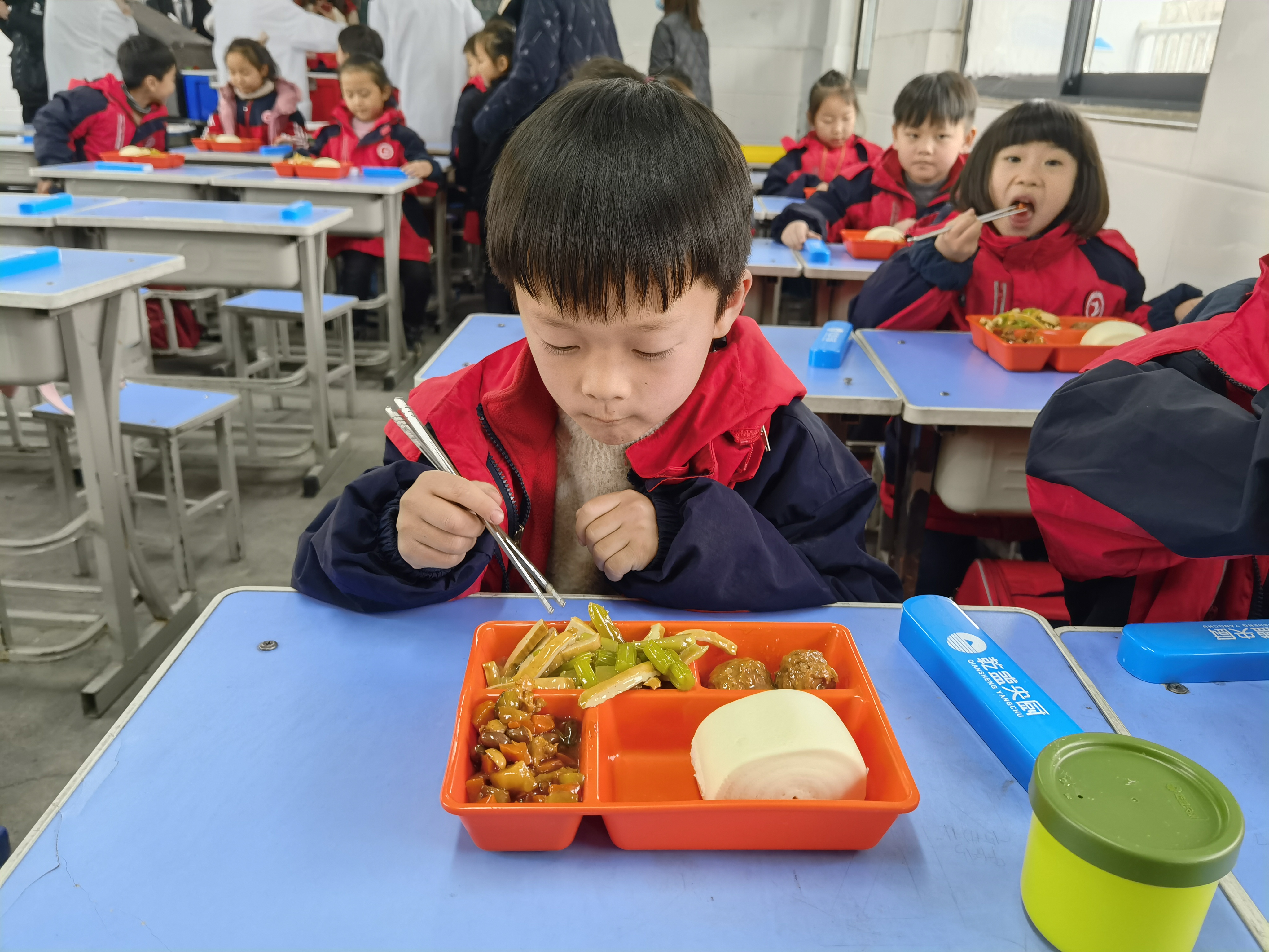 七一路二小校長(zhǎng)邵在斌說:“中午配餐和延時(shí)服務(wù)是市委、市政府實(shí)實(shí)在在的惠民工程。為了做好這項(xiàng)工作,我們前期去鄭州參觀學(xué)習(xí),回來按照文件精神去做。中午配餐解決很多問題,一是家長(zhǎng)接學(xué)生難,輔導(dǎo)作業(yè)難的問題,我們中午配有語(yǔ)文老師,晚上配有數(shù)學(xué)老師給學(xué)生輔導(dǎo)作業(yè)。二是延緩了學(xué)校周邊交通壓力。三是能保證學(xué)生休息時(shí)間,為了配合延時(shí)服務(wù),我們的上課時(shí)間從8點(diǎn)調(diào)整到8點(diǎn)30分,但開門時(shí)間還是7點(diǎn)20分,方便上班早的家長(zhǎng)送學(xué)生。本次送餐1200多份,每班用餐時(shí)兩名教師在崗,吃完飯后留一名老師輔導(dǎo)學(xué)生。今天我們?nèi)珕T監(jiān)督配餐,領(lǐng)導(dǎo)全部在崗,校長(zhǎng)分包樓,中層領(lǐng)導(dǎo)分包層,責(zé)任到人,保證每個(gè)孩子用餐安全,讓每位家長(zhǎng)都安心。”③7