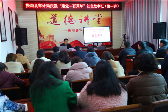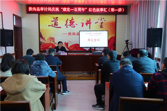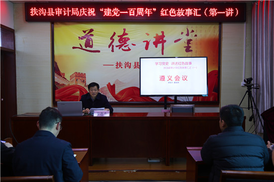 “遵義會議結(jié)束了王明左傾機(jī)會主義路線在黨中央的統(tǒng)治(4年),確立了以毛澤東為代表的新的中央正確領(lǐng)導(dǎo)。在中國革命的危急關(guān)頭,挽救了黨,挽救了紅軍,挽救了中國革命,是我黨歷史上一個生死攸關(guān)的轉(zhuǎn)折點?!?月15日,扶溝縣審計局黨史學(xué)習(xí)教育“紅色故事匯”開講了,局長翟連生主講,局機(jī)關(guān)全體黨員干部參加了學(xué)習(xí)。