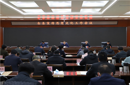 吳青鋒指出,2021年全縣宣傳思想文化工作的總體要求是,堅(jiān)持以習(xí)近平新時(shí)代中國(guó)特色社會(huì)主義思想為指導(dǎo),全面貫徹十九大和十九屆二中、三中、四中、五中全會(huì)精神,深入貫徹習(xí)近平總書(shū)記關(guān)于宣傳思想工作的重要論述和視察河南重要講話精神,貫徹落實(shí)全國(guó)、全省、全市宣傳部長(zhǎng)會(huì)議和縣委十二屆九次全會(huì)暨縣委經(jīng)濟(jì)工作會(huì)議精神,増強(qiáng)“四個(gè)意識(shí)”,堅(jiān)定“四個(gè)自信”,做到“兩個(gè)維護(hù)”,聚焦“舉旗幟、聚民心、育新人、興文化、展形象”的使命任務(wù),圍繞開(kāi)局“十四五”、開(kāi)啟新征程,圍繞立足新發(fā)展階段、貫徹新發(fā)展理念、構(gòu)建新發(fā)展格局,緊扣慶祝建黨百年宣傳教育這條主線,以深化實(shí)施“八大工程”為總抓手,在推動(dòng)習(xí)近平新時(shí)代中國(guó)特色社會(huì)主義思想深入人心上下功夫,在唱響愛(ài)黨愛(ài)國(guó)愛(ài)社會(huì)主義的時(shí)代主旋律上下功夫,在弘揚(yáng)時(shí)代新風(fēng)、培育時(shí)代新人上下功夫,在凝心聚力推動(dòng)全縣經(jīng)濟(jì)高質(zhì)量發(fā)展上下功夫。強(qiáng)化使命擔(dān)當(dāng)、銳意改革進(jìn)取,在新的歷史起點(diǎn)上譜寫(xiě)守正創(chuàng)新、攻堅(jiān)克難的出彩篇章。