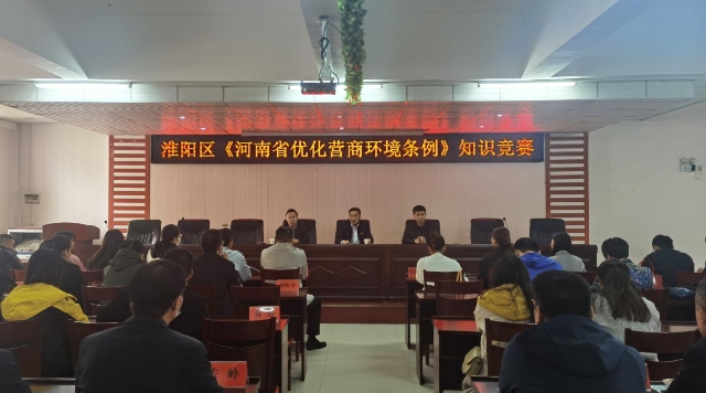 • 10月12日,淮陽(yáng)區(qū)以“優(yōu)化營(yíng)商環(huán)境 人人都是店小二”為主題,舉行了第二期《河南省優(yōu)化營(yíng)商環(huán)境條例》(以下簡(jiǎn)稱(chēng)《條例》)知識(shí)競(jìng)賽活動(dòng)。