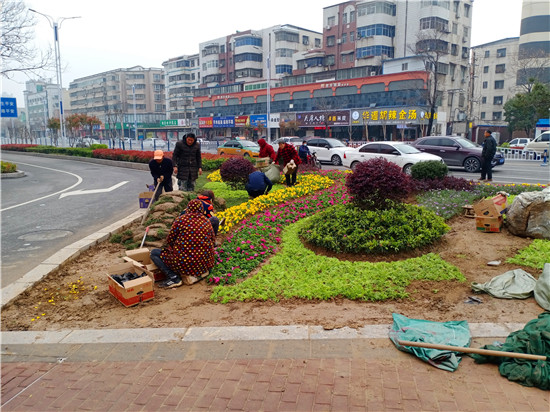 一場(chǎng)春雨過后,處處洋溢著勃勃生機(jī)。3月20日上午,記者在周口中心城區(qū)大慶路與交通大道交叉口處的紅綠燈旁看到,園藝工作人員正在忙碌著補(bǔ)種花木,黃色、綠色、紅色的花兒平鋪在一起組合成一道亮麗的風(fēng)景,扮靚了街頭,令人賞心悅目。③2