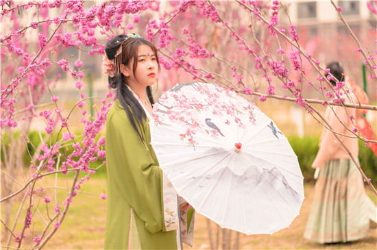 活動期間,漢服愛好者身著各種款式的漢服,長衫、褙子、曲裾、襦裙,宛若一幅歷史長卷華麗鋪開,再一次展現(xiàn)出泱泱中華的傳統(tǒng)文化和歷史底蘊。開始時,他們在人民公園大門口跳起了中國風(fēng)舞蹈,隨后又三五成群地在公園內(nèi)游玩,吸引了不少市民圍觀。