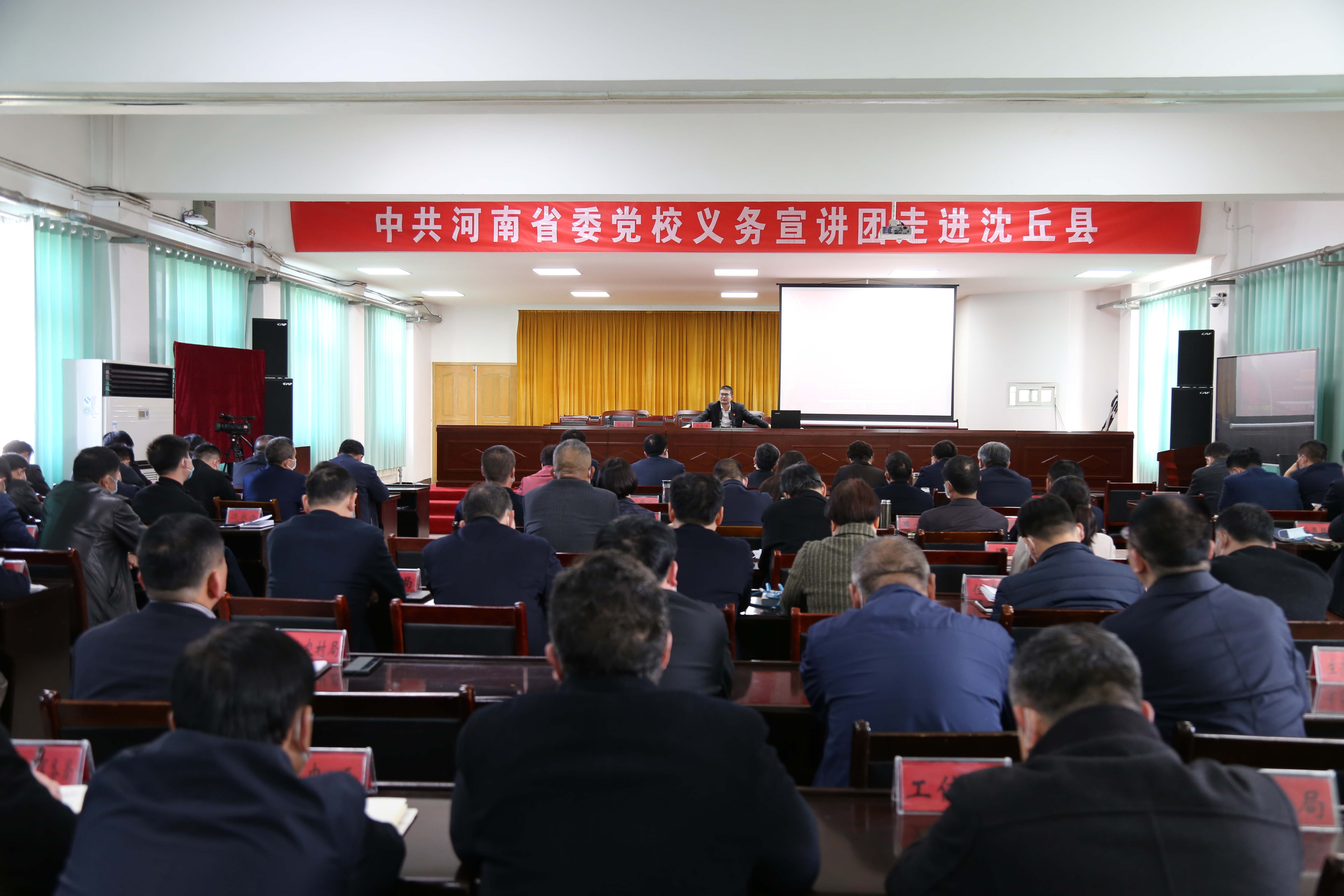 3月25日下午,中共河南省委黨校義務(wù)宣講團(tuán)走進(jìn)沈丘縣開展宣講活動(dòng)?;矢α⑿隆①Z慶偉、殷曉春、趙振、郝四春、劉和輝、呂孝坤等在家的縣四個(gè)班子領(lǐng)導(dǎo)及副處級以上干部與全縣近200余名黨員干部共同聆聽了宣講報(bào)告。縣委副書記賈慶偉主持報(bào)告會(huì)。