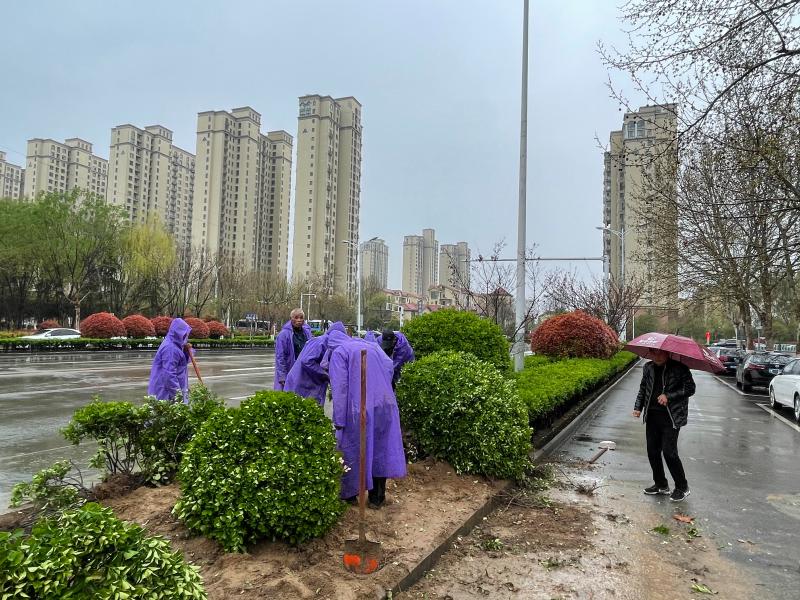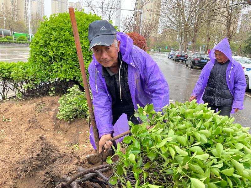 春天正是增綠補綠、扮靚城市“顏值”的好時機。3月26日下午,春雨淅淅瀝瀝,記者在市體育中心附近看到,園林工人正在冒雨移走綠植。據介紹,他們今天要把此地的綠植移走,以便后續(xù)種植花卉。綠植移走后,園林工人給空地蓋上防塵布,防止泥土被雨水沖到道路上。