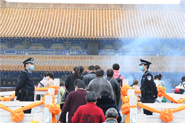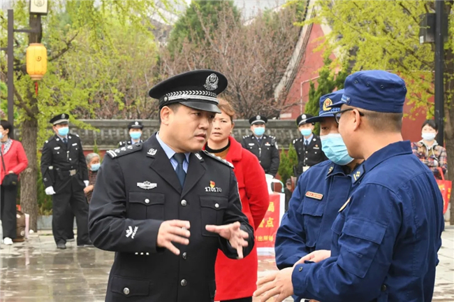 在太清宮、明道宮景區(qū)主要活動(dòng)點(diǎn),全力做好人流、車(chē)流疏導(dǎo)和受理報(bào)警求助等工作;執(zhí)勤民警還及時(shí)為走失兒童家長(zhǎng)、行動(dòng)不便的老人等提供熱情周到的服務(wù);民輔警積極向過(guò)往香客宣傳“金鐘罩”防詐騙知識(shí),耐心細(xì)致地手把手教群眾注冊(cè)“金鐘罩”;交警大隊(duì)根據(jù)職責(zé)任務(wù)設(shè)置了駐地警衛(wèi)組、機(jī)動(dòng)應(yīng)急組、事故應(yīng)急組,大隊(duì)領(lǐng)導(dǎo)靠前指揮,因情施策,合理調(diào)度,全力保障活動(dòng)現(xiàn)場(chǎng)道路交通安全暢通。③2