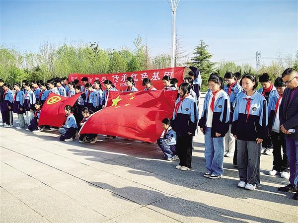 • 連日來,周口市第十九初級中學(xué)通過舉辦主題升旗儀式、烈士陵園祭掃等活動,讓學(xué)生從英烈精神中汲取不斷前進的力量。