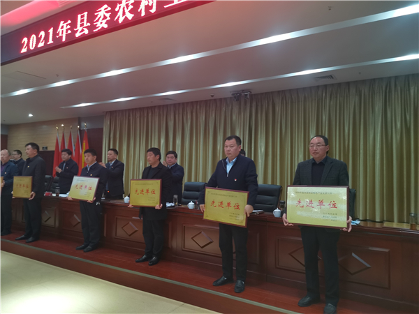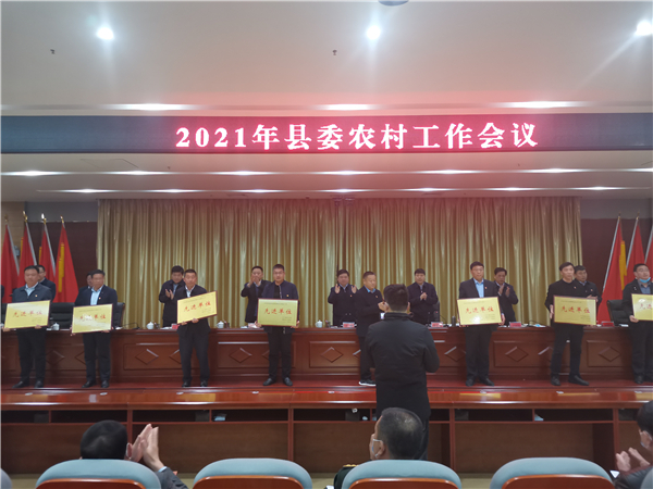 郭俊濤就貫徹落實會議精神及下一步農(nóng)村工作進行具體安排部署。縣委副書記許四軍宣讀了縣委、縣政府關于表揚2020年度農(nóng)業(yè)農(nóng)村工作先進單位、先進個人的通報。會議還對受表彰的先進單位代表進行了頒獎。