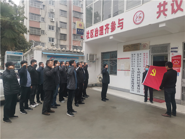 在永安小區(qū)活動現(xiàn)場,黨員干部、小區(qū)黨群議事會成員面對黨旗,重溫入黨誓詞,牢記共產(chǎn)黨人使命,不忘為民服務(wù)初心。
