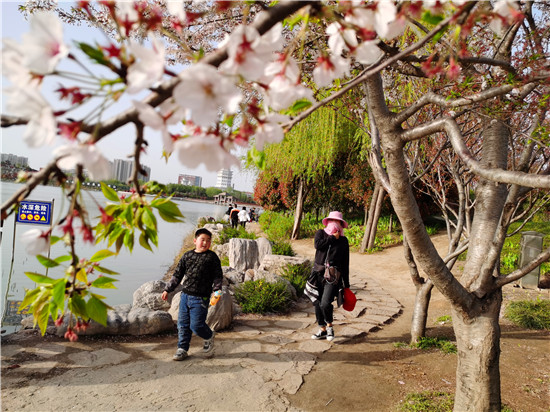 最美四月天,踏青正當(dāng)時(shí)。清明節(jié)期間,周口公園、植物園里金黃的連翹、婀娜多姿的美人梅、鵝黃嫩綠的新柳、盛開的桃花……一片生機(jī)盎然、春意融融的景象,市民紛紛來到戶外,沐浴春光,擁抱大自然,悠閑享受假日時(shí)光。②9