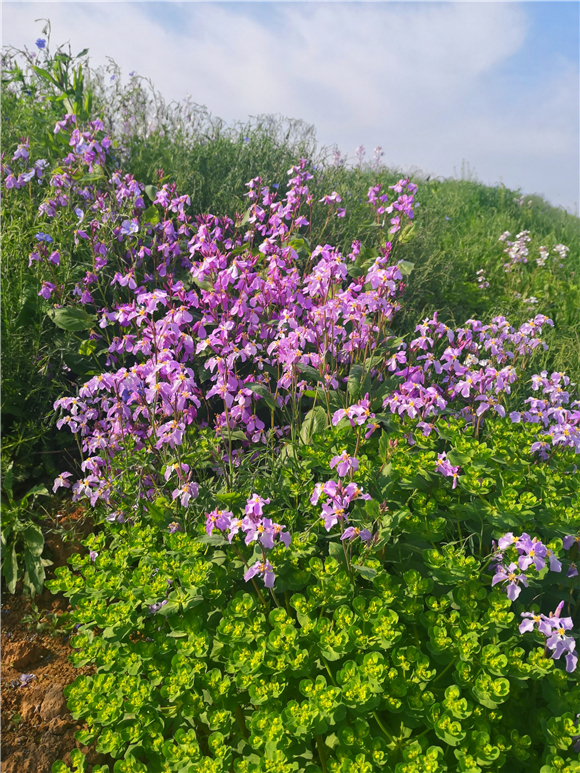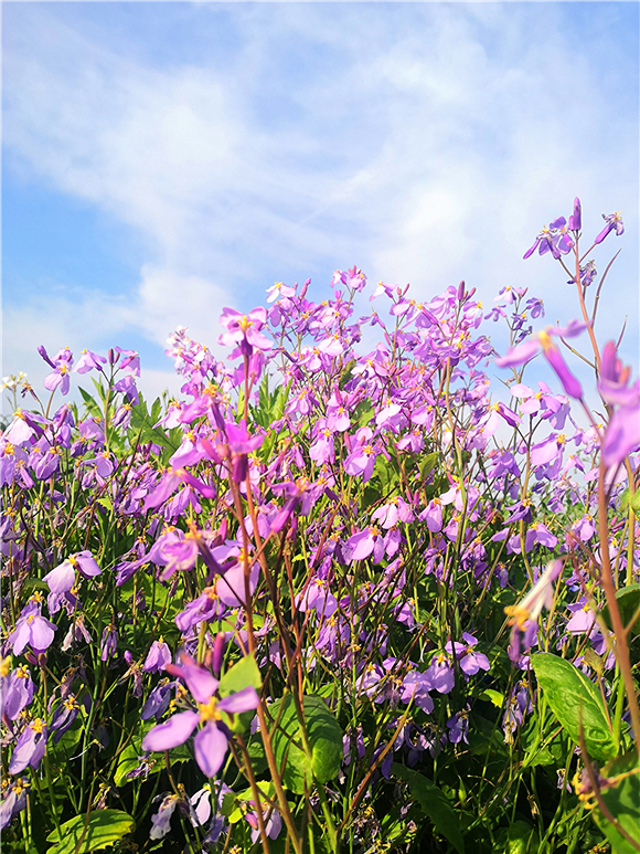 據(jù)了解,諸葛菜也叫二月蘭,因早春農(nóng)歷二月前后開花,所以叫二月蘭,花開溫柔,娟秀,清雅,很是招人喜歡。而且具有較強的耐寒性與適應(yīng)性,自繁能力比較強,一次播種能年年自成群落,能夠有效控制裸地揚塵起沙、抑制雜草生長。諸葛菜花花期相當長,能夠從早春時節(jié),一直開到暮春初夏間,當百花盛開時,它依然露著笑臉。因此著實是春天里的“早到遲退”之花。③5
