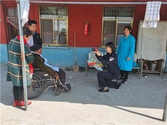 在大王樓敬老院康養(yǎng)的趙中原老人,已經(jīng)八旬有余,因常年臥床,行動不便一直未能辦理二代居民身份證。三月下旬,其突發(fā)疾病,急需辦理醫(yī)保手續(xù)入院治療。但由于沒有身份證無法辦理相關(guān)手續(xù),這可急壞了敬老院負(fù)責(zé)人和工作人員。按正常程序,需要帶老人去派出所戶籍室采集人像及指紋信息,由于老人年邁又行動不便,他們選擇向沈丘縣公安局西關(guān)派出所求助。接到電話后,西關(guān)派出所戶籍民警王欠積極與社區(qū)民警高坤朋一道前往敬老院。為了采集到合格信息,王欠與敬老院工作人員固定好老人坐姿,自己單膝下跪,為趙中原老人拍照。由于老人年邁且長期臥床,坐姿和面部表情不好調(diào)整,王欠反復(fù)十余次單膝跪地,才采集到合格的人像信息。