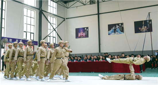 4月12日下午,項(xiàng)城市雜技藝術(shù)學(xué)校通過(guò)運(yùn)用雜技藝術(shù)編創(chuàng)的紅色雜技劇,在該校首次面向社會(huì)展演,以慶祝建黨100周年。同學(xué)們穿著解放軍服裝,模擬渡江、登城、翻越城墻、槍林彈雨戰(zhàn)斗等場(chǎng)景,演繹了一場(chǎng)紅色文化教育的情景劇,讓人耳目一新,受到大家一致好評(píng)。周口日?qǐng)?bào)·周道客戶端記者 梁照曾 攝