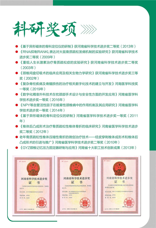 高延征,主任醫(yī)師,二級教授,博士后導(dǎo)師,國家級知名專家,享受河南省人民政府特殊津貼專家,目前擔(dān)任鄭州大學(xué)、河南大學(xué)、山東大學(xué)碩士研究生導(dǎo)師,河南省人民醫(yī)院(骨科)脊柱脊髓外科主任、學(xué)科帶頭人,河南省脊柱外科診療中心主任,河南省醫(yī)學(xué)會骨科分會主任委員。