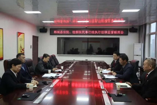 為進(jìn)一步推動(dòng)教育整頓工作,認(rèn)真落實(shí)省院、市院關(guān)于開(kāi)展民事行政執(zhí)行法律監(jiān)督專(zhuān)項(xiàng)活動(dòng)的要求,推動(dòng)民事、行政檢察工作順利開(kāi)展,解決人民群眾反應(yīng)強(qiáng)烈的執(zhí)行難、執(zhí)行亂等問(wèn)題,4月20日下午,鄲城縣檢察院黨組書(shū)記、代檢察長(zhǎng)陸智明和縣院黨組成員、副檢察長(zhǎng)馬立強(qiáng)以及第四檢察部員額檢察官李平會(huì)同縣法院有關(guān)領(lǐng)導(dǎo)召開(kāi)了民事行政執(zhí)行法律監(jiān)督聯(lián)席會(huì)??h法院黨組書(shū)記、院長(zhǎng)王洪彬應(yīng)邀出席會(huì)議。
