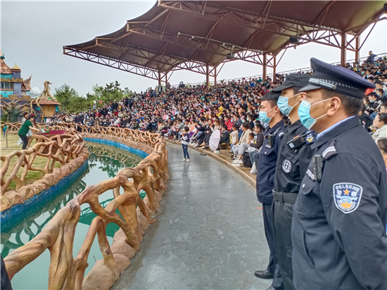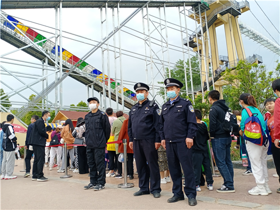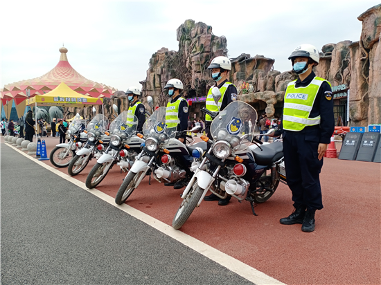 “接受游客求助、及時調解糾紛、處理園內外各類突發(fā)事件……”在一天緊張而繁忙的工作中,民警顧不上休息,堅守在景區(qū)一線,用自己的辛苦和汗水,換來了游客的游園安全,為游客創(chuàng)造了良好的治安環(huán)境。