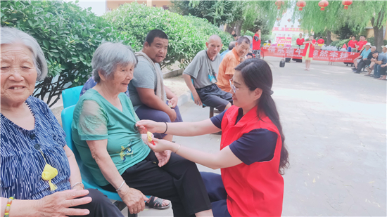 當(dāng)日上午,志愿者帶著粽子、西瓜、香蕉、面包等來(lái)到平店鄉(xiāng)敬老院,為這里的老人提供義診、義剪、義演等服務(wù),陪老人提前過(guò)端午節(jié)。