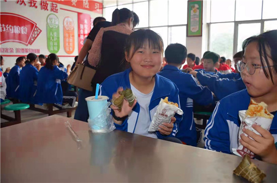 “我覺得今年的端午節(jié)意義特別特殊,再過幾天就要中考了,為了讓大家安心學(xué)習(xí),我們沒有放假回家過端午,學(xué)校還特地為我們分發(fā)了粽子,從校長手中接過粽子的那一刻讓我深深感受到了被關(guān)愛的幸福!”九年級(jí)學(xué)生劉奇盛說。