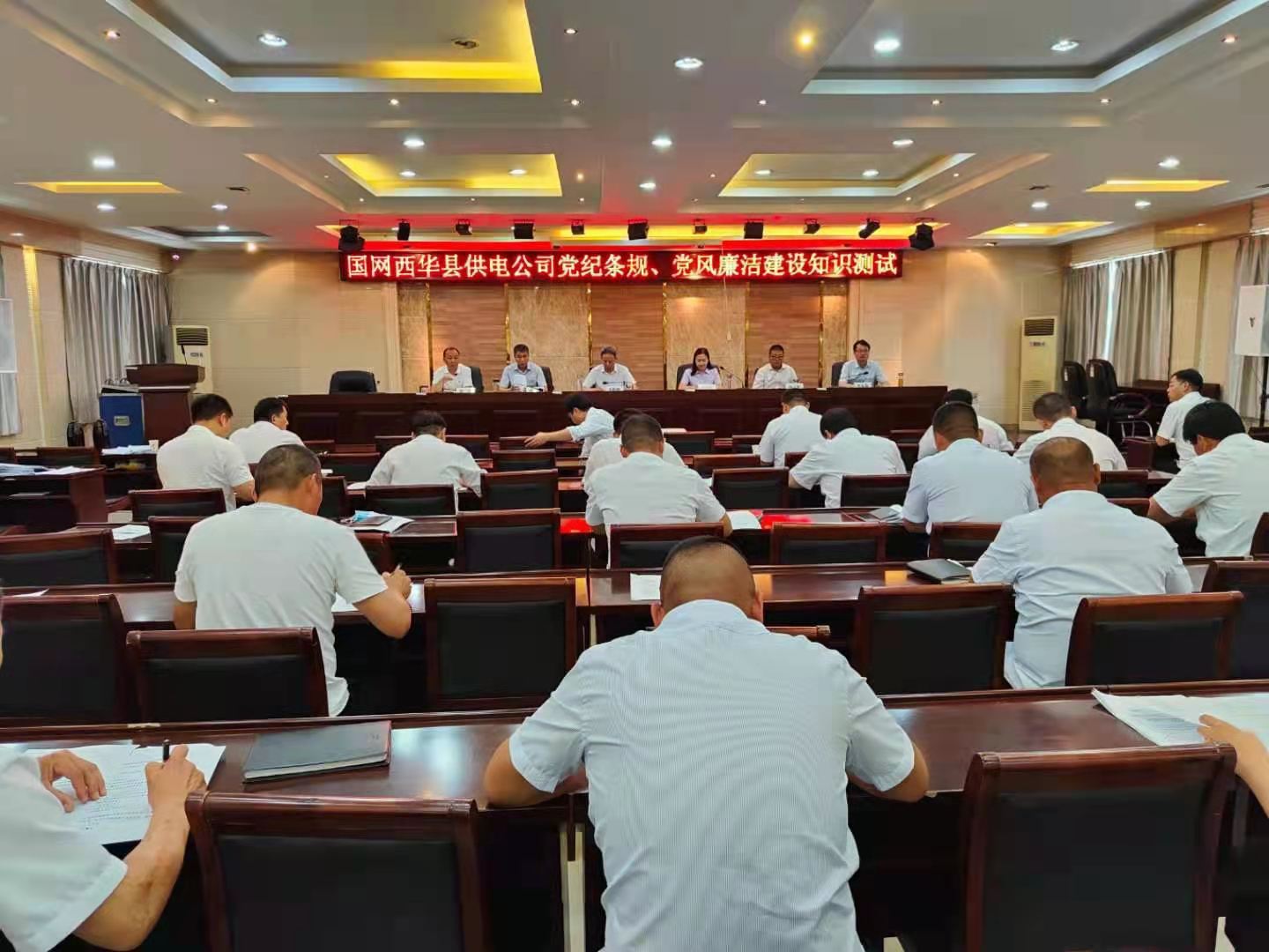 為切實(shí)加強(qiáng)黨員干部作風(fēng)建設(shè)、能力建設(shè),進(jìn)一步嚴(yán)明黨的紀(jì)律,不斷提高黨員干部思想理論素養(yǎng),增強(qiáng)黨性、黨紀(jì)觀念,6月24日,國網(wǎng)西華縣供電公司開展“知敬畏守底線”黨紀(jì)法規(guī)知識(shí)測試活動(dòng),該公司班子成員及全體黨員參加了知識(shí)測試。