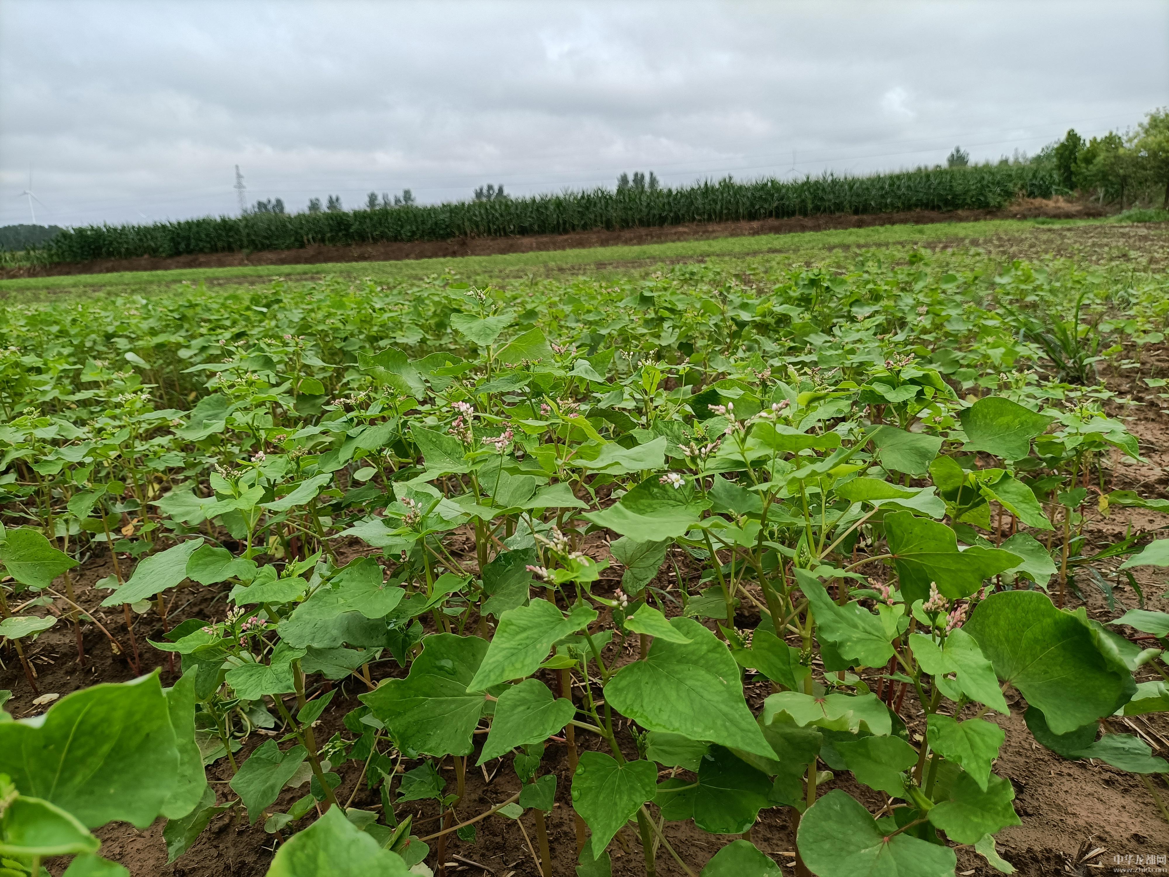 田里是災(zāi)后補(bǔ)種的水果玉米和蕎麥,他指著田里的綠苗,從西向東給記者依次介紹:“西邊的玉米苗最高,你看都長(zhǎng)到9葉1芯了,是7月31日播的;這邊稍矮一些,是8月3日種的,東邊更矮的是8月6日種的。當(dāng)時(shí)是,田里的積水排除一塊耕種一塊,等最東面的地塊可以栽種時(shí),已經(jīng)過(guò)了水果玉米適播期,我就從內(nèi)蒙古引進(jìn)苦蕎種子,種了下去,你看已經(jīng)開花了。”