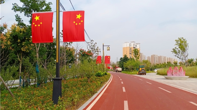 ?9月30日,市區(qū)臨街商鋪門前五星紅旗隨處可見,紅旗隨風(fēng)飄揚(yáng),將街道裝扮一新,喜迎國(guó)慶節(jié)的到來