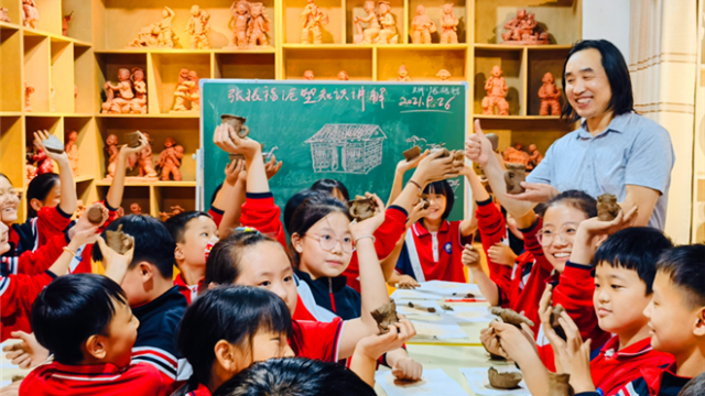 “這作品形象逼真,太生動(dòng)了。”昨日,在張振福鈞瓷泥塑藝術(shù)館,同學(xué)們被一件件憨態(tài)可掬的泥塑作品驚呆了,看到活潑、歡快、形態(tài)各異的泥塑兒童造型,大家紛紛稱贊。