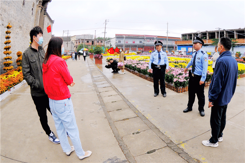 國慶七天長假,商水縣公安局在致力文旅創(chuàng)意的葉氏莊園、水韻章華等景區(qū)內(nèi)加強巡邏執(zhí)勤,維護景區(qū)的安全穩(wěn)定,為來自全國各地的游客提供服務。圖為10月7日,商水縣公安局鄧城派出所民警在有“中原小故宮”之稱的葉氏莊園景區(qū)菊展現(xiàn)場巡邏執(zhí)勤、服務游客。