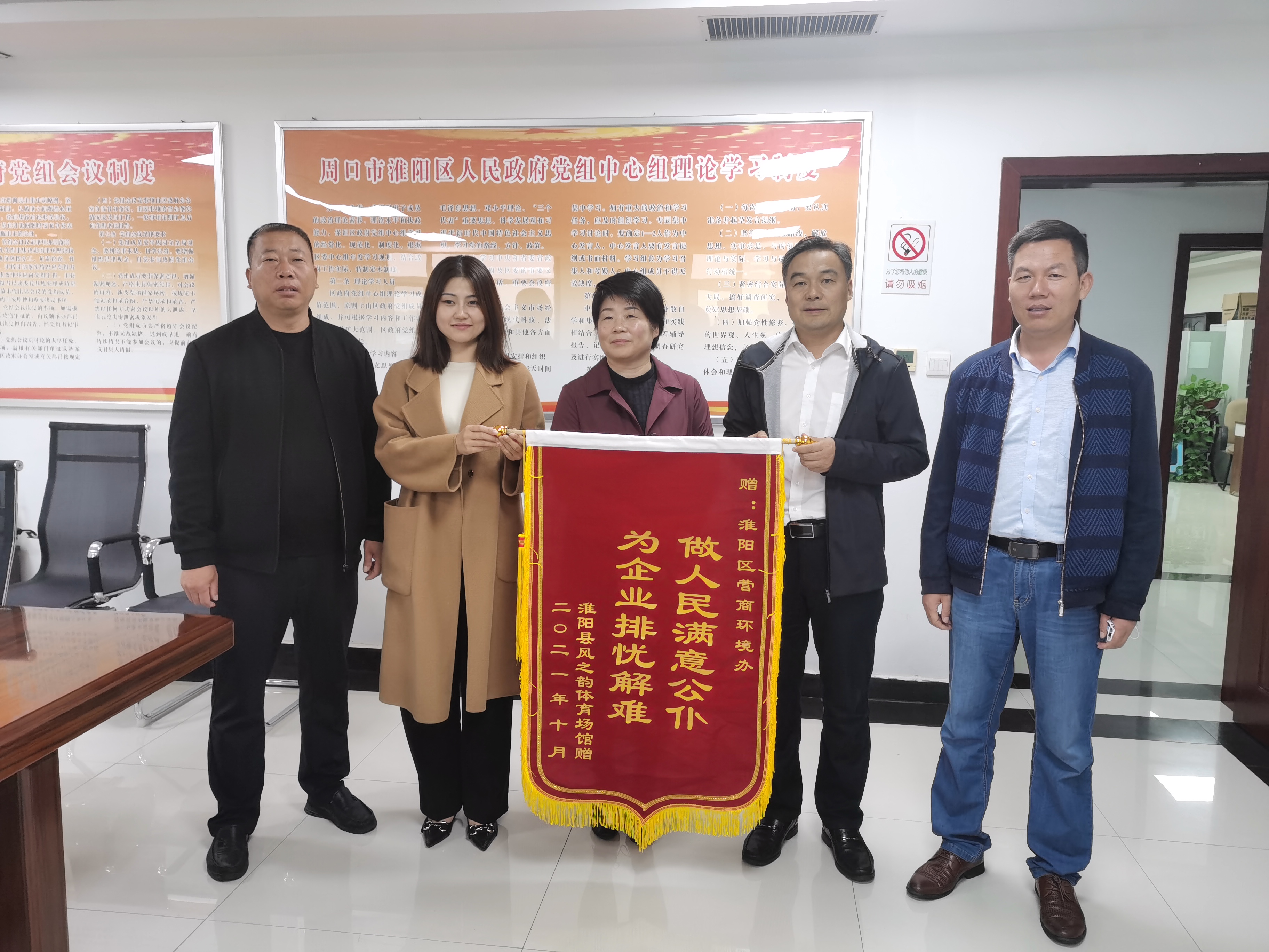 10月8日下午,淮陽區(qū)風之韻體育館負責人把一面印著“做人民滿意公仆 為企業(yè)排憂解難”的錦旗送到淮陽區(qū)優(yōu)化營商環(huán)境辦公室,對區(qū)營商辦協調職能部門容缺辦理,快速解決企業(yè)痛點難點問題表示感謝。