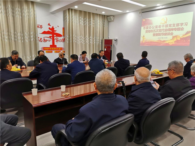 10月14日,市委辦公室召開“九九重陽(yáng)節(jié)”老干部座談會(huì),聽建議,敘情誼,共慶重陽(yáng)佳節(jié)。