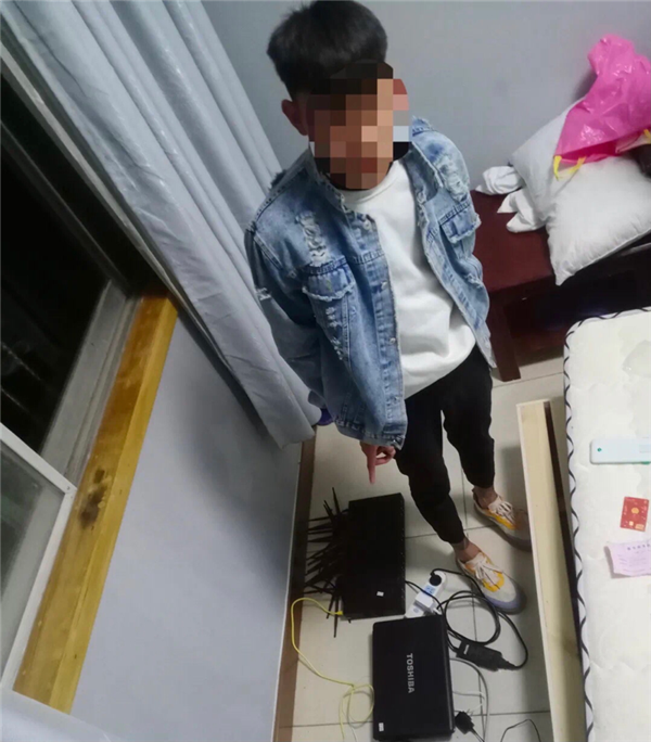 經(jīng)過3天3夜的蹲守,辦案民警摸清了犯罪嫌疑人的活動軌跡,10月13日晚上,吳臺派出所所長朱浩宇帶領(lǐng)民警賈坤陽等人果斷出擊,成功搗毀該涉詐窩點,將嫌疑人覃某宗和陳某欽抓獲,查獲“GOIP”設(shè)備1臺、電腦2臺、手機(jī)2部、路由器1臺、攝像頭1個。