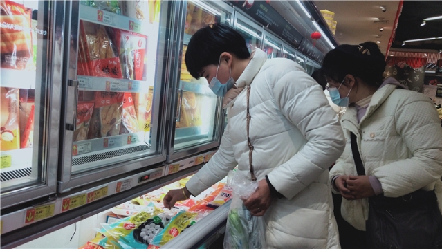 • ?2月15日是元宵節(jié),湯圓占據(jù)中心城區(qū)各大超市的熱銷C位,各式袋裝湯圓擺滿冰柜。
