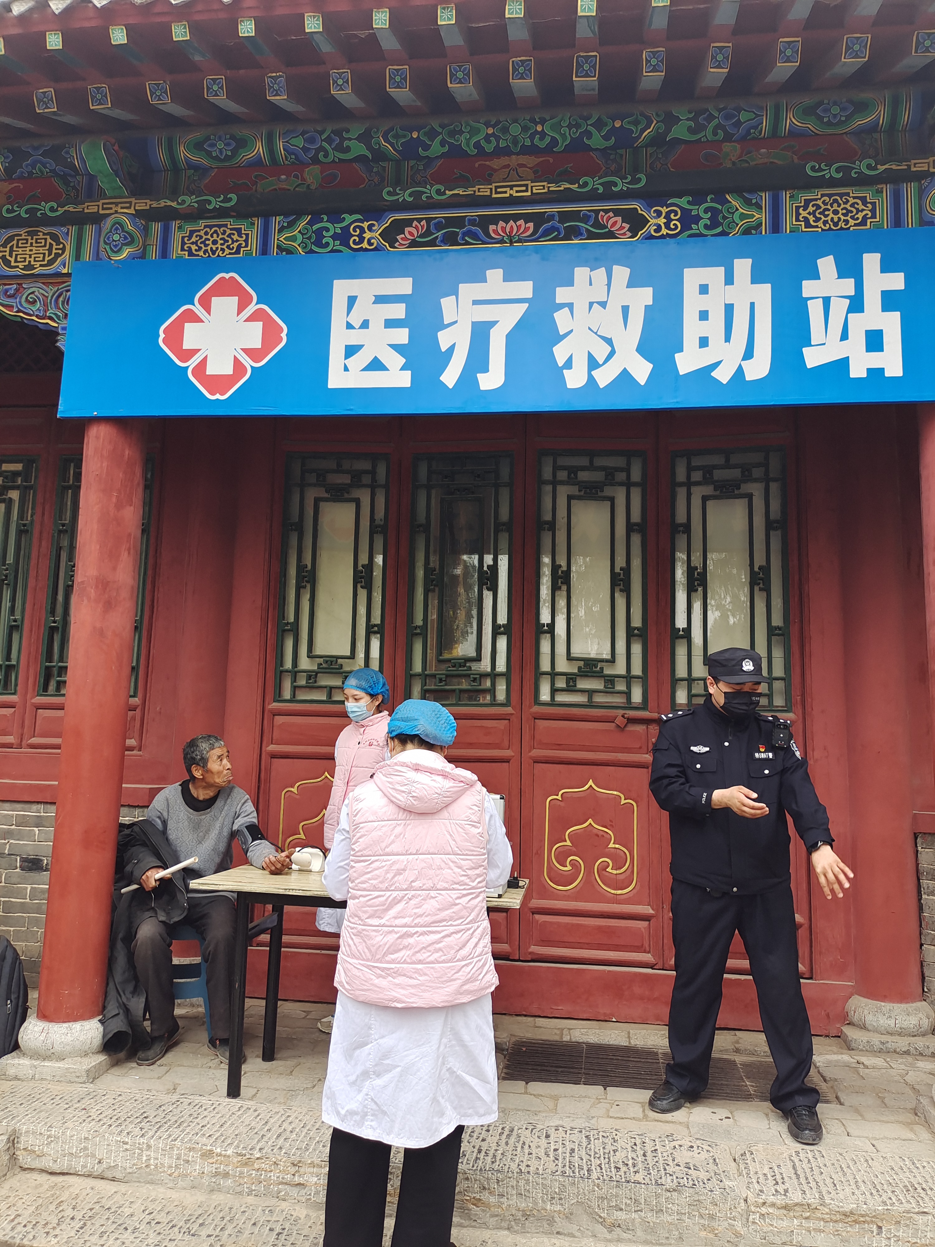 量血壓的姑娘叫蘇圓圓,據(jù)她介紹,全淮陽20多家醫(yī)院都派人在太昊陵各處設(shè)置“醫(yī)療救助站”,游客有任何不舒服可就近詢問觀察,各站都配有應(yīng)急藥箱,如有需要免費使用。“這段時間人流量大,大家一定要遵守各項安全措施,避免意外發(fā)生?!碧K圓圓說。