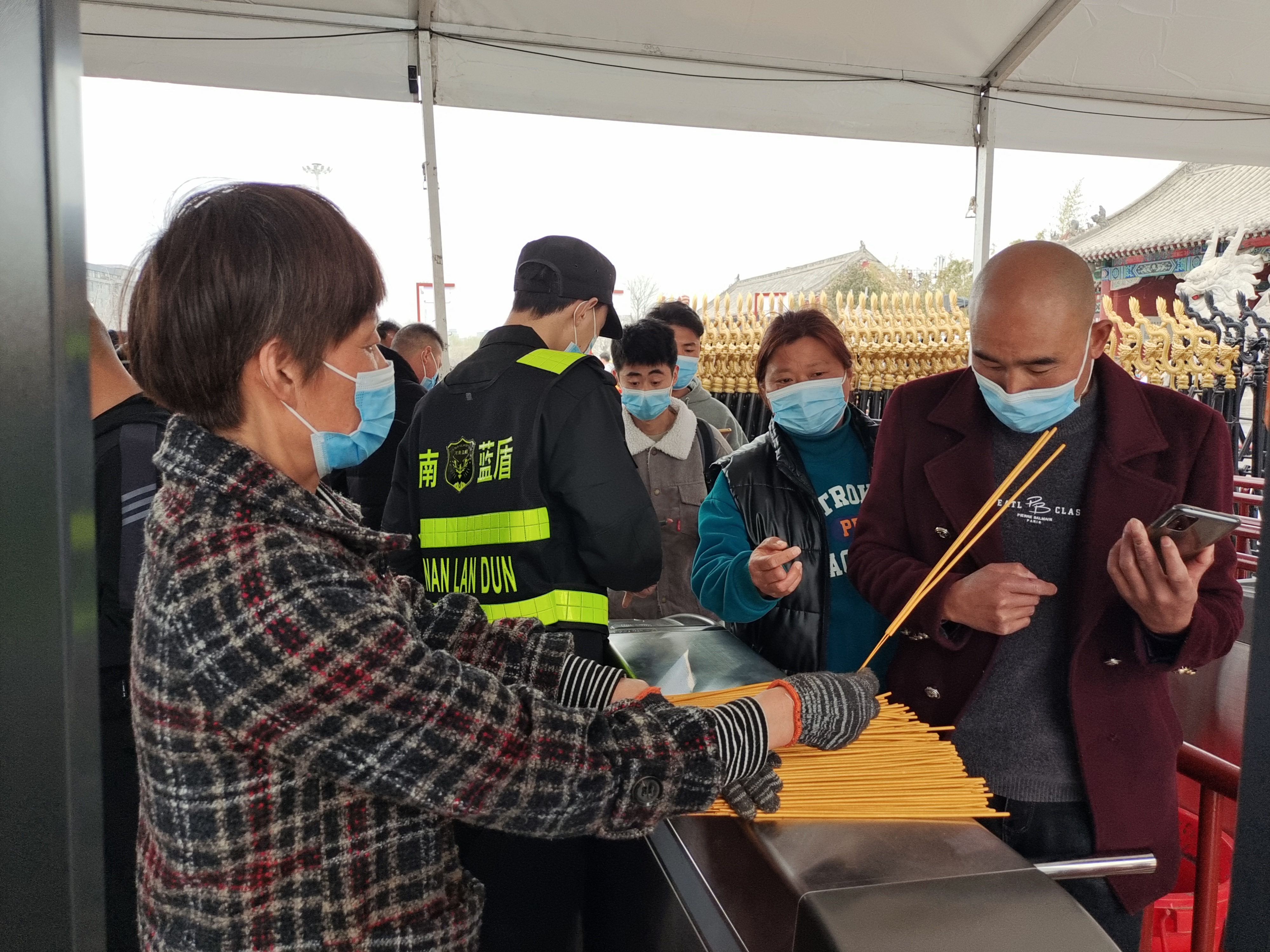 “這是您的祈福香,請拿好?!碧涣甑拿總€入口,既有專人檢查私自帶香行為,也有工作人員為游客免費發(fā)放線香。家住淮陽區(qū)的李姐是其中一員,她早上5時30分就到達景區(qū),領(lǐng)取線香并整理,方便為游客發(fā)放?!爸灰€有游客來,我們就不休息,要把祈福的心愿送到他們手中,并引導(dǎo)他們文明燒香、文明祭祀。”李姐說。