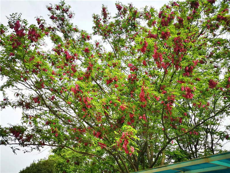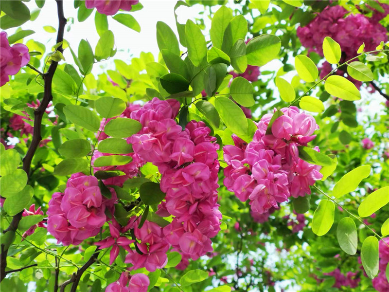“槐林五月漾瓊花,郁郁芬芳醉萬家。”眼下,在周口濱河公園,紅色的槐花怒放,芳香四溢,惹人心醉。陽光下,一串串、一簇簇、一樹樹槐花隨風(fēng)搖曳,美不勝收。周口日報·周道客戶端記者 普淑娟 攝