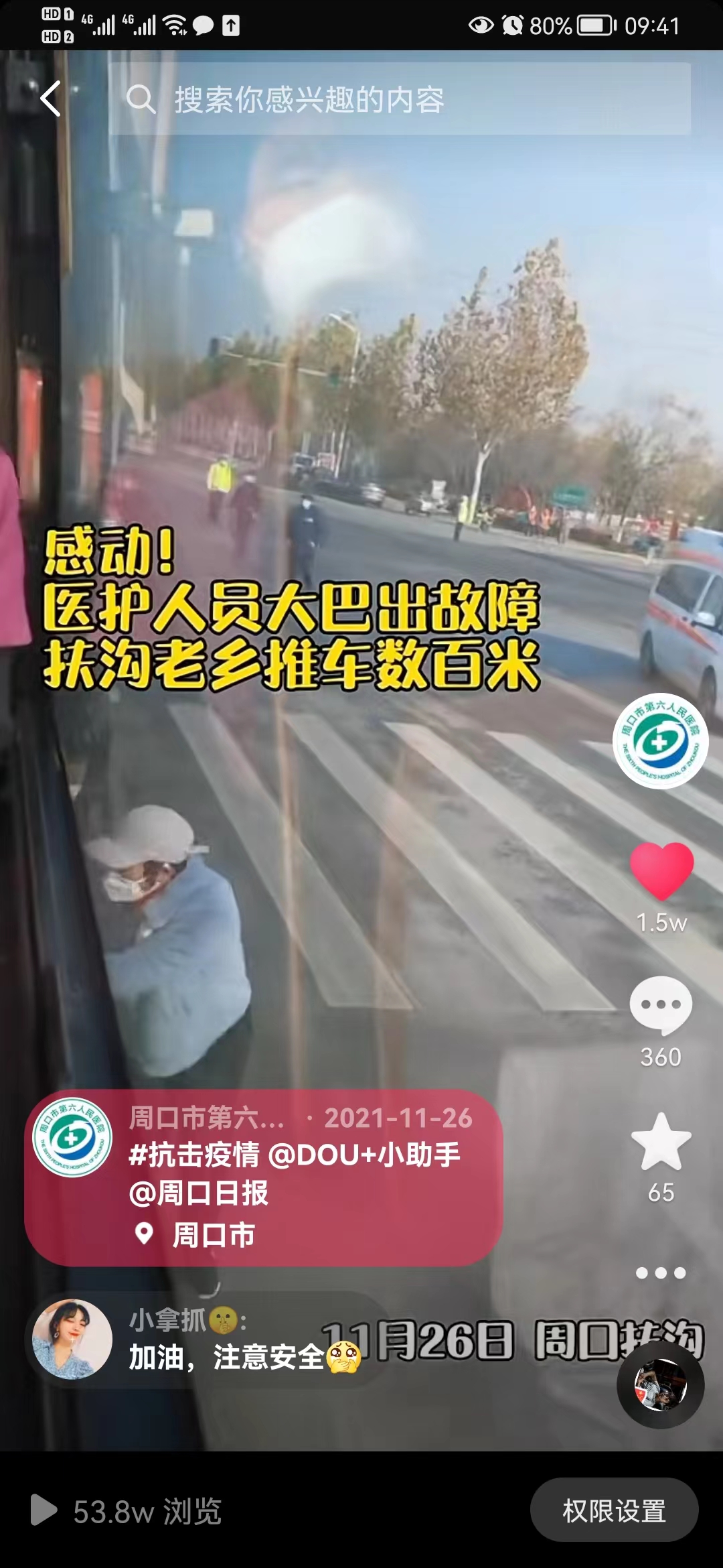 回去的時(shí)候,楊妮她們坐的大巴車出了故障,沒(méi)辦法正常啟動(dòng),扶溝鄉(xiāng)親們,親自推車數(shù)百米,幫助她們的大巴啟動(dòng)。她坐在車上非常感動(dòng),用手機(jī)記下了這一幕,在后來(lái)醫(yī)院的宣傳中,這條段視頻被點(diǎn)擊了50多萬(wàn)次,收獲了1萬(wàn)多人的點(diǎn)贊。