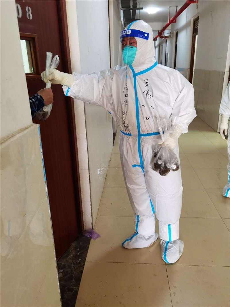 人手緊張的時候,王飛也會進入隔離點和大家并肩作戰(zhàn)。他每天不分晝夜地工作,由于工作量大,每次完成工作都是晚上十一點多,甚至更晚。隊員有需求,王飛隨叫隨到,千方百計幫助解決問題,幾乎每天都在超負荷工作。
