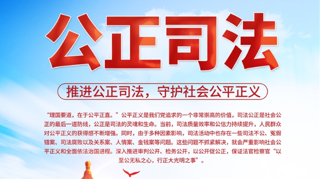 • “理國(guó)要道,在于公平正直?!惫秸x是我們黨追求的一個(gè)非常崇高的價(jià)值,司法公正是社會(huì)公正的最后一道防線,公正是司法的靈魂和生命。