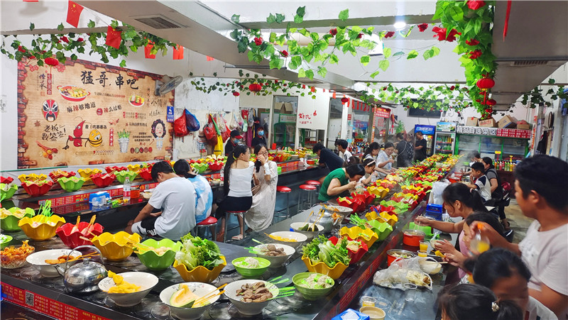 7月22日,周五。傍晚時(shí)分,一場暴雨如約而至,給燥熱的天氣帶來絲絲涼意。位于西華原縣委黨校院內(nèi)的串吧老板李猛從后廚走出,搬把凳子坐在店門口一邊涼快,一邊刷新著手機(jī)天氣預(yù)報(bào)。他得根據(jù)天氣情況估摸一下當(dāng)晚的客流量,以備食材。