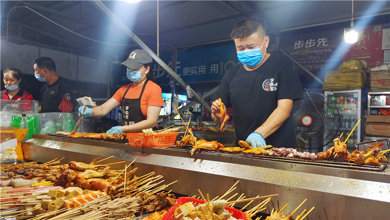 采訪中,記者還了解到,在原縣委黨校地?cái)傄故邪l(fā)展壯大的過程中,西華縣商務(wù)局、城管局、市場監(jiān)管局等部門牽頭引導(dǎo)商戶在西華縣高鐵站、上億美食廣場和西華縣南廣場設(shè)置地?cái)傄故?,進(jìn)行規(guī)范管理,繁榮西華“夜經(jīng)濟(jì)”,共設(shè)置190余家攤位,日均消費(fèi)35萬元左右。①5