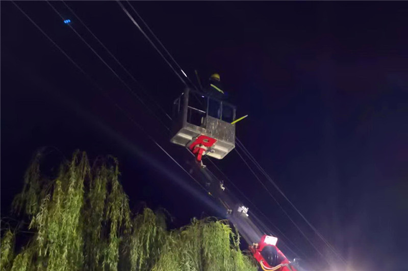 故障發(fā)生后,國網(wǎng)周口供電公司立即啟動(dòng)惡劣天氣應(yīng)急預(yù)案,并通過手機(jī)短信傳達(dá)到每位職工。雨勢稍微放緩后,各縣市供電公司迅速派出應(yīng)急搶修分隊(duì),出動(dòng)搶修人員1389人,搶修車輛303輛。在雨中,大家分工協(xié)作,爭分奪秒完成每一道工序,一部分搶修人員排查線路,消除安全隱患,防止次生災(zāi)害;一部分搶修人員快速投入到搶修工作中。