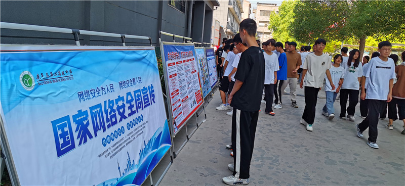 9月6日是國家網(wǎng)絡(luò)宣傳周校園日,鹿邑縣第二高級中學校園里整齊地擺放出數(shù)塊制作精美、內(nèi)容充實的網(wǎng)絡(luò)安全宣傳展板,引起師生們駐足觀看。
