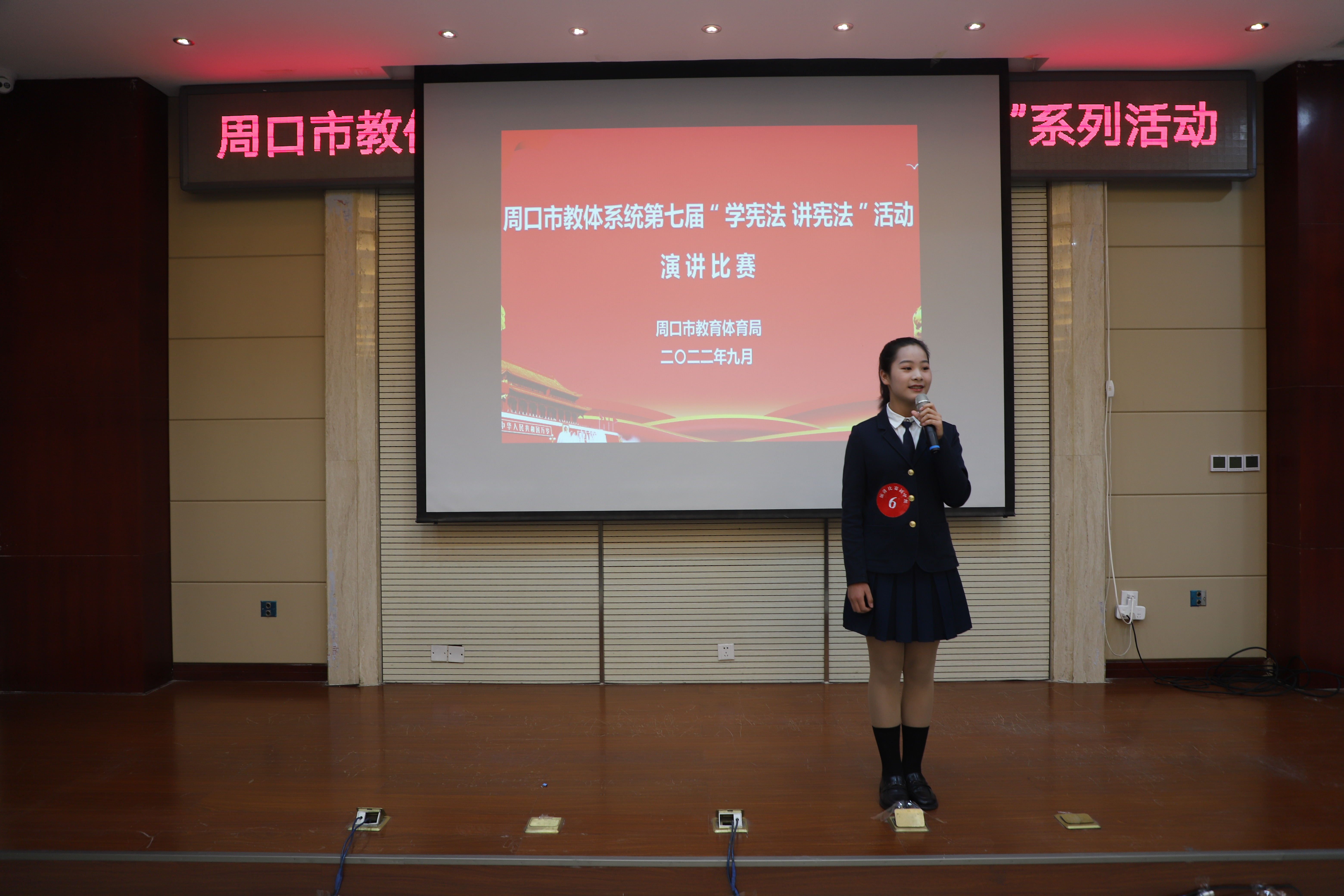 為進一步弘揚憲法精神,推進廣大中小學生憲法學習教育活動,增強師生法治意識,豐富師生法治知識,9月21日,由周口市教體局主辦的第七屆中小學生“學憲法 講憲法”演講比賽和知識競賽舉行。