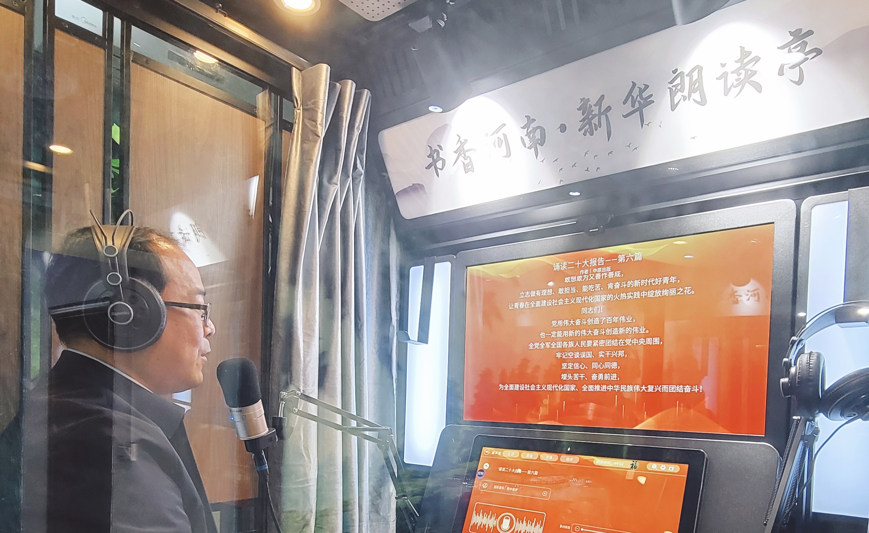 “堅(jiān)持黨的全面領(lǐng)導(dǎo)是堅(jiān)持和發(fā)展中國特色社會主義的必由之路……”11月3日,在位于項(xiàng)城市商城路與西大街交叉口的新華書店誦讀亭內(nèi),誦讀愛好者年秋燕正在選讀黨的二十大報(bào)告原文,其深情且鏗鏘有力的誦讀聲令人如癡如醉。