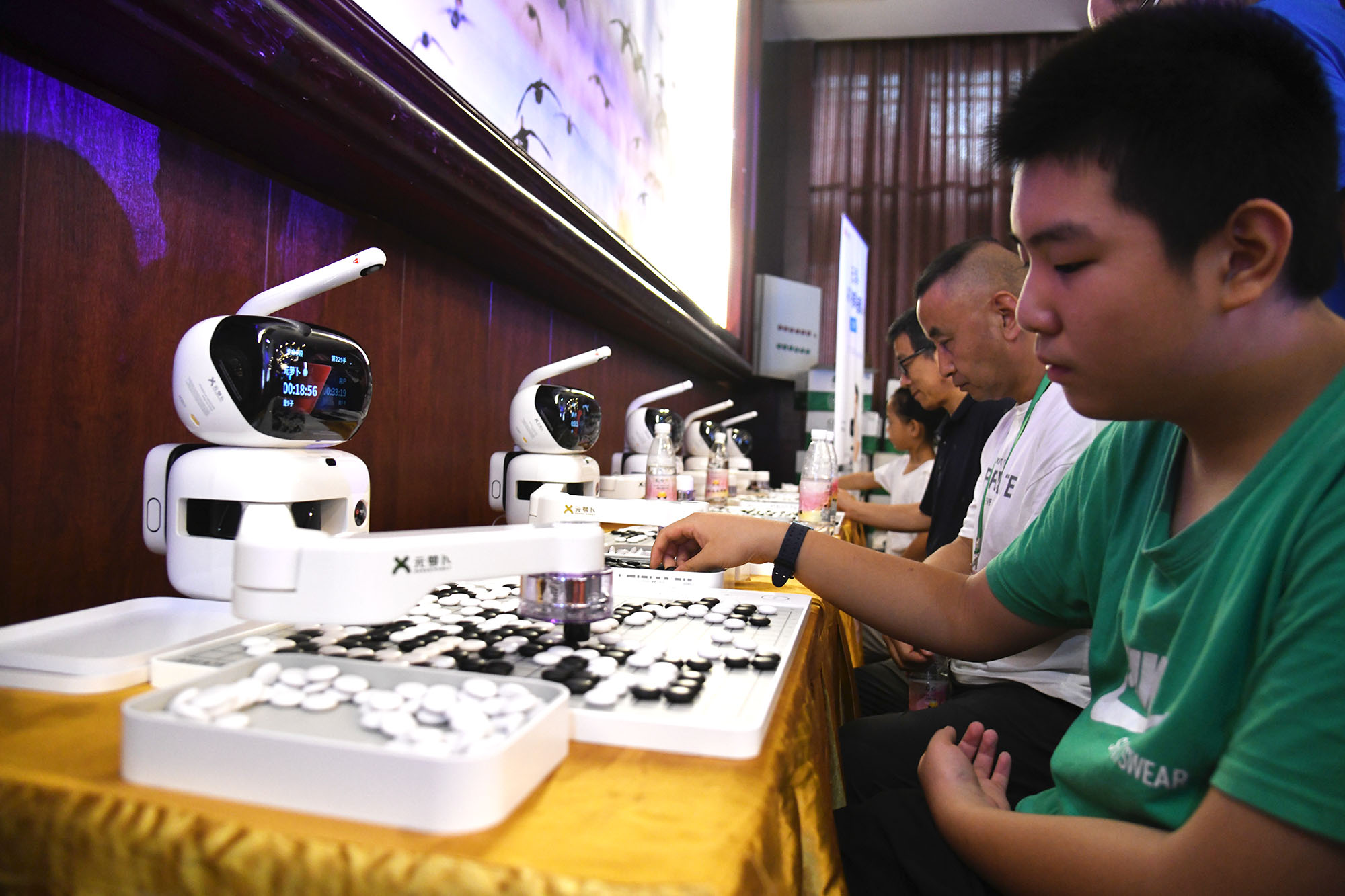 ?8月15日上午,圍棋棋手們在賽事間隙,和機器人對弈,增添不少樂趣。在2023中國淮陽第二屆“荷花杯”全國業(yè)余圍棋公開賽的賽場邊,賽事方特意擺放五部圍棋機器人,供棋手們在賽事之余娛樂。工作人員介紹,這些圍棋機器人很強大,不上網聯機的情況下,它們具有業(yè)余圍棋三段水平,如果上網聯機,則具有職業(yè)九段能力,人機大戰(zhàn),棋手們未必能贏了機器人。