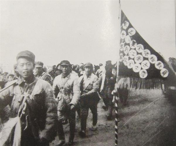 十八軍部隊(duì)揮師南下,受到沿途人民群眾的熱烈歡迎。圖為安徽阜陽人民向部隊(duì)贈送的錦旗。