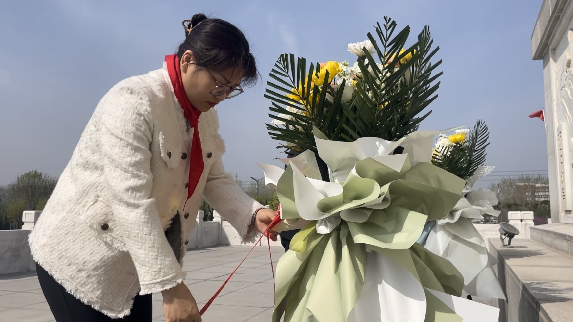 上午10時(shí),悼念儀式正式開始。少先隊(duì)員們著裝整齊,胸前佩戴鮮艷的紅領(lǐng)巾,懷著無比沉痛與敬仰的心情,列隊(duì)肅立。雄渾激昂的國歌聲響起,六名學(xué)生代表面色凝重,緩步上前,向烈士敬獻(xiàn)花籃。示范區(qū)社會(huì)事務(wù)局副局長羅方方、示范區(qū)搬口辦事處黨委委員、武裝部長鄒建立、示范區(qū)搬口中心校校長薛永信來到紀(jì)念碑前,深情整理緞帶。同學(xué)們手持鮮花,低頭默哀,寄托哀思,表達(dá)敬意,向烈士英雄們致以最深刻的緬懷。隨后,同學(xué)們輕抬腳步,在紀(jì)念碑前駐足凝視,依次將手中的鮮花敬獻(xiàn)給烈士,繞行紀(jì)念碑一周后,大家回到原位,向紀(jì)念碑深深三鞠躬。