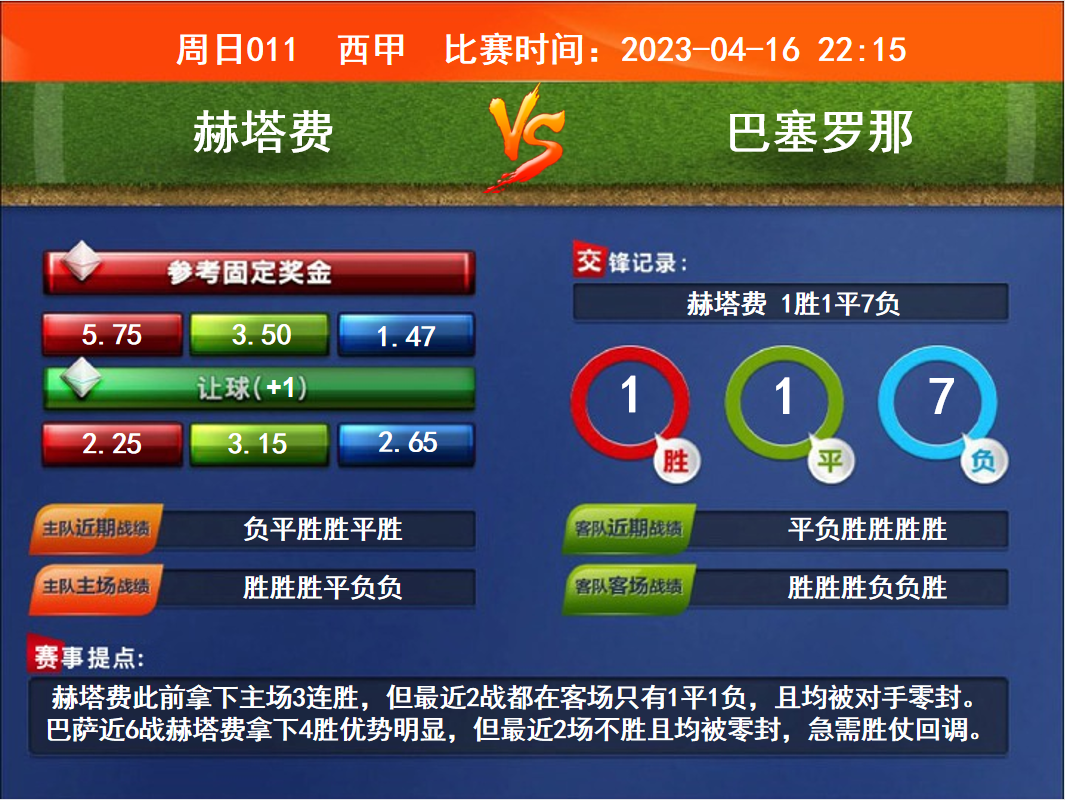 賽事提點(diǎn):赫塔費(fèi)此前拿下主場(chǎng)3連勝,但最近2戰(zhàn)都在客場(chǎng)只有1平1負(fù),且均被對(duì)手零封。巴薩近6戰(zhàn)赫塔費(fèi)拿下4勝優(yōu)勢(shì)明顯,但最近2場(chǎng)不勝且均被零封,急需勝仗回調(diào)。
