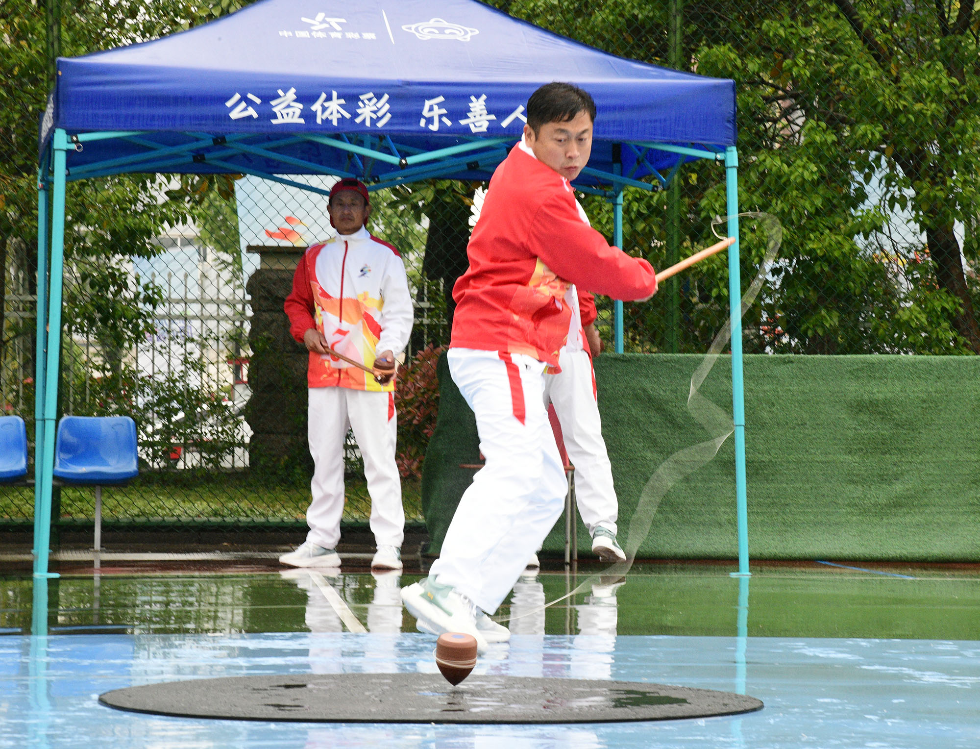 陀螺比賽中,運(yùn)動員在放球。記者 梁照曾 攝