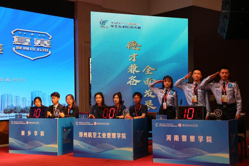 大賽分為個(gè)人必答題、第一輪搶答題、集體必答題、第二輪搶答題和風(fēng)險(xiǎn)題五個(gè)環(huán)節(jié)進(jìn)行。比賽中,來自全省21所高校的代表隊(duì)共84名選手同臺競技,各代表隊(duì)選手全神貫注、踴躍作答,展現(xiàn)出良好的素養(yǎng)。經(jīng)過初賽、復(fù)賽、決賽三輪7場激烈的角逐,鄭州航空工業(yè)管理學(xué)院、漯河職業(yè)技術(shù)學(xué)院、黃淮學(xué)院、新鄉(xiāng)學(xué)院、河南警察學(xué)院5支代表隊(duì)從中脫穎而出,成功晉級河南省大學(xué)生“誠信校園行”學(xué)生資助知識大賽總決賽。