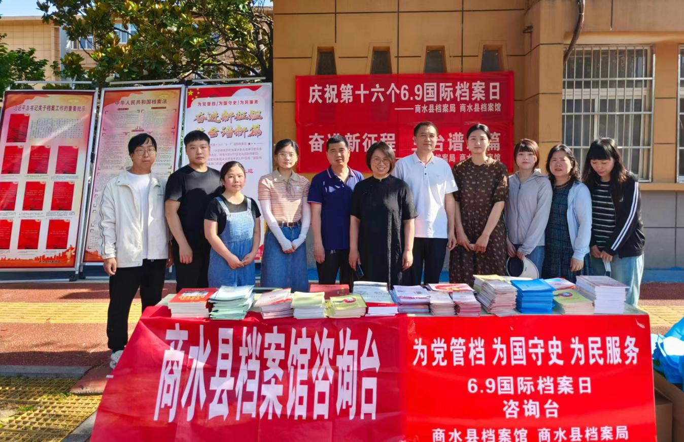 • 6月9日是第16個(gè)國際檔案日,為宣傳普及檔案知識(shí),弘揚(yáng)檔案文化,增強(qiáng)檔案工作社會(huì)影響。6月9日上午,商水縣檔案局、商水縣檔案館在商水縣委大門外兩側(cè)開展“奮進(jìn)新征程 蘭臺(tái)譜新篇”6.9國際檔案日主題宣傳活動(dòng)。